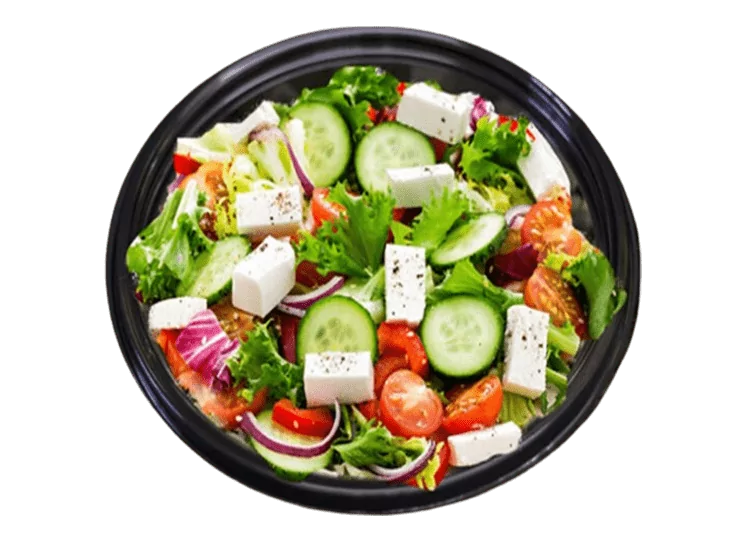 Die Zutaten werden sorgfältig ausgewählt und in unserer eigenen Küche frisch zubereitet. Es kommen nur die besten und frischesten Zutaten in unseren Griechischen Bauernsalat, ohne unnötige Zusätze. Das Ergebnis ist ein Salat, der genauso schmeckt wie in einer griechischen Taverne. Frisch, aromatisch und voller Geschmack.