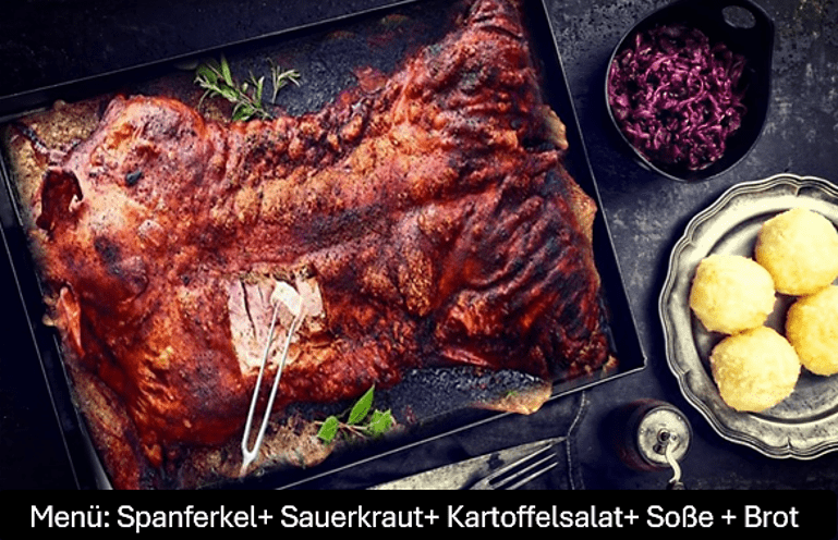 Der Fahrer bringt pünktlich Ihr warmes verpacktes Spanferkel. Es bleibt über 2 Std. im Karton warm.